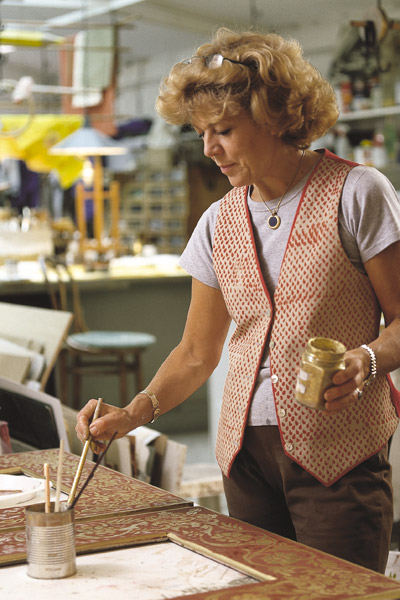 Isabelle de Borchgrave è una bella signora belga di nobili natali, con due grandi occhi azzurri ed una voce profonda ed un po’ roca, decisamente charmant. Disegna da quando è nata, a diciassette anni inizia a creare abiti che dipinge con le sue mani per amiche e conoscenti. Il suo atelier a Bruxelles (Atelier Isabelle de Borchgrave: 73A, Chaussée de Vleurgat, 1050 Bruxelles) è un luogo meraviglioso: in uno spazio moderno e minimalista Madame de Borchgrave realizza con la carta i suoi tessuti ed i suoi abiti magici, circondata da uno staff di giovani assistenti. La carta viene utilizzata esattamente come un tessuto e trattata in modo da ottenere effetti tali da renderla difficilmente distinguibile da una stoffa vera, anche guardandola a distanza ravvicinata. «Si parte sempre da un foglio di carta – dice Isabelle de Borchgrave – ma poi la pittura, le mani, l’acqua, la straordinaria padronanza e la fantasia nell’uso dei materiali riescono a produrre effetti di velluto e di seta, spessori e morbidezze alla vista e al tatto, lucentezze d’oro e di perle e impalpabili preziosi merletti che ricordano la perfezione dei maestri fiamminghi».