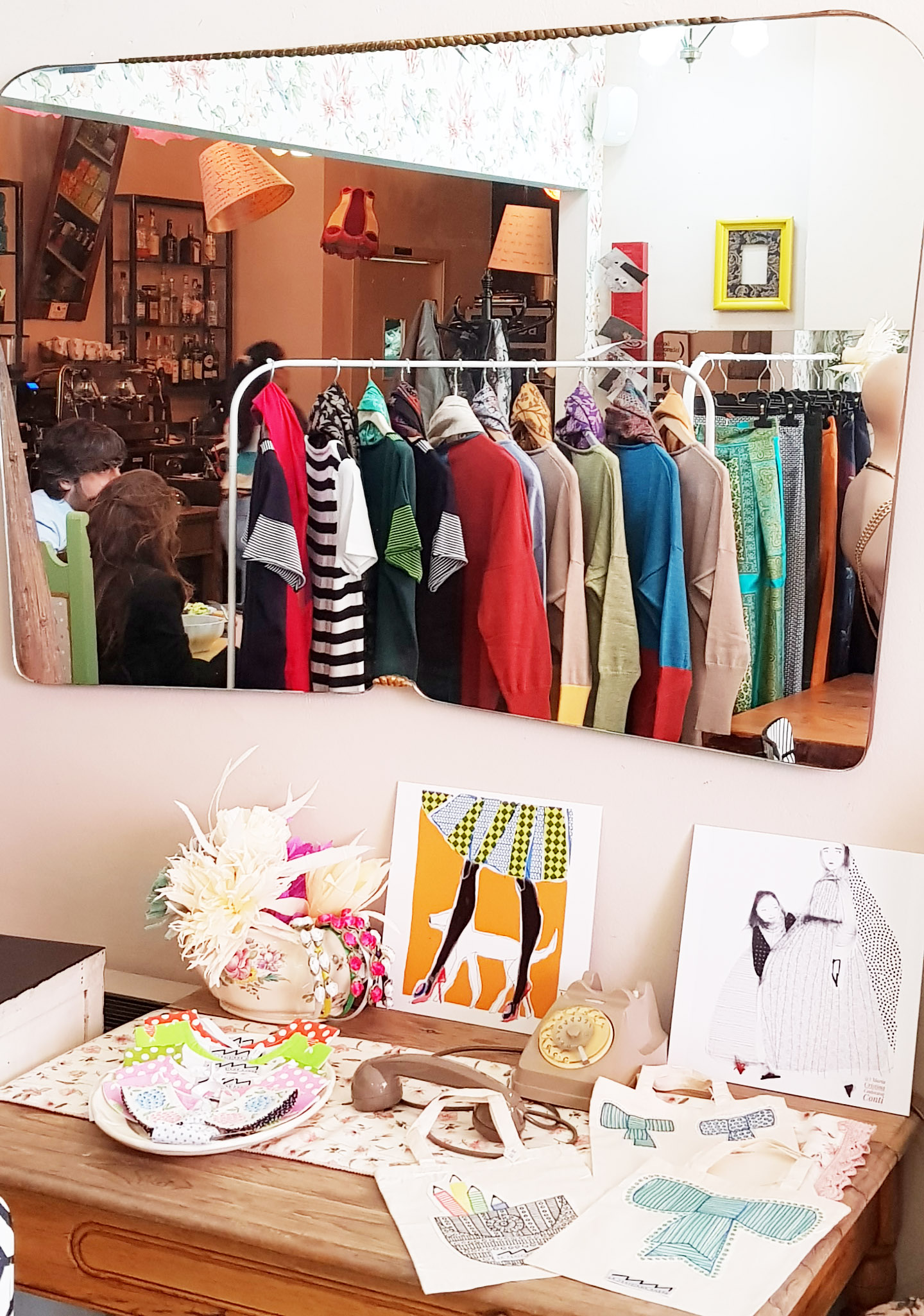 Qui potete dunque trovare esposti i nostri bijoux, gli abiti donna e kids, i colletti, le pashmine, le maglie in lana e cotone, gli accessori. Un mondo creativo, quello di Le Troisième Songe, ospitato in un ambiente che lo valorizza nel migliore dei modi, senza alcuna forzatura.