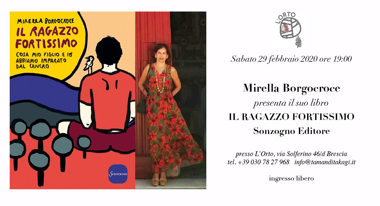 Mirella Borgocroce insegna lettere in una scuola secondaria, è stata tastierista ed autrice musicale del gruppo Pale Tv, una band della prima new wave italiana anni ’80 collegata alla Italian Records, pratica il Buddismo della scuola di Nichiren Daishonin. E’ sposata, con figli. E’ nata con un dono importante: l’uso sapiente delle parole, grazie alle quali è riuscita a raccontare la storia di suo figlio Rocco, della sua malattia e del lungo viaggio che ha portato alla sua guarigione. Questa storia è diventata un libro, “Il ragazzo fortissimo” (Sonzogno Editore), che Mirella presenterà sabato 29 febbraio 2020 alle ore 19:00 all’Orto, in via Solferino 46/d a Brescia. Sono onorata che abbia accettato di rispondere ad alcune mie domande, che condivido con la certezza che possano arrivare al cuore ed essere di conforto a tutti coloro che si trovano o si sono trovati in quell’altrove così buio eppure fecondo che è la malattia.